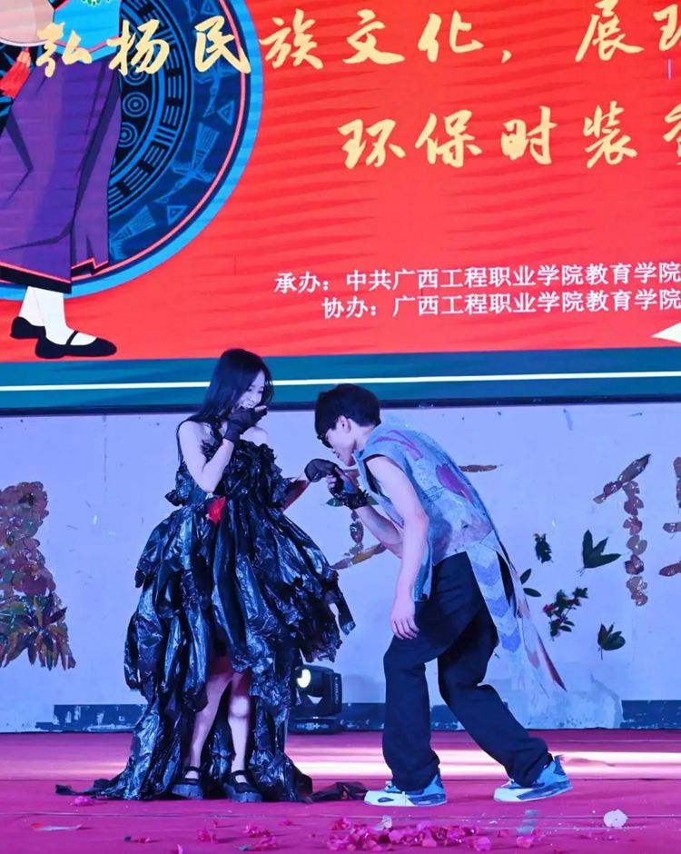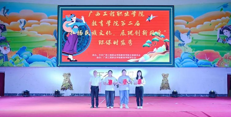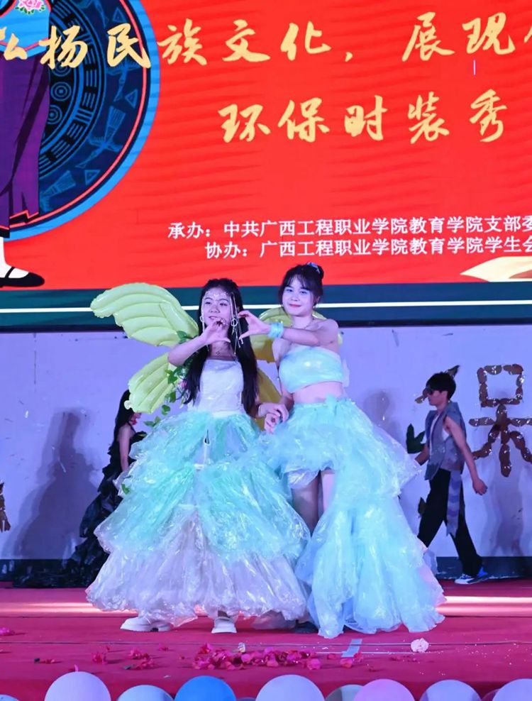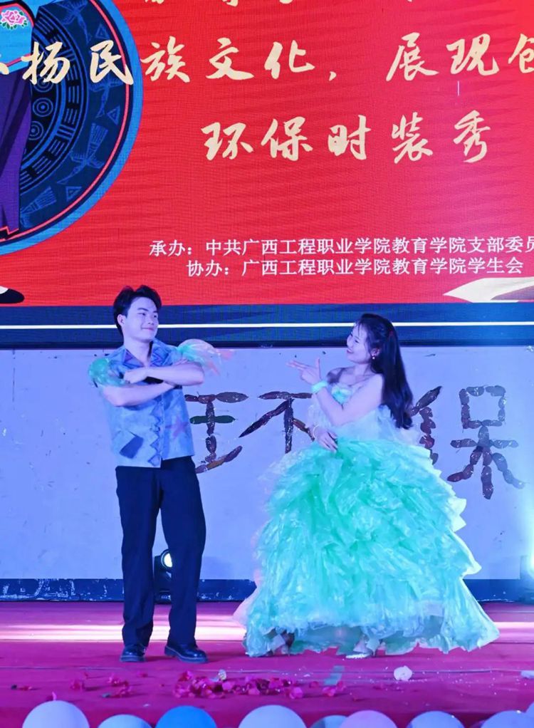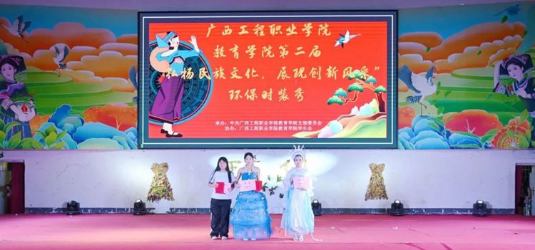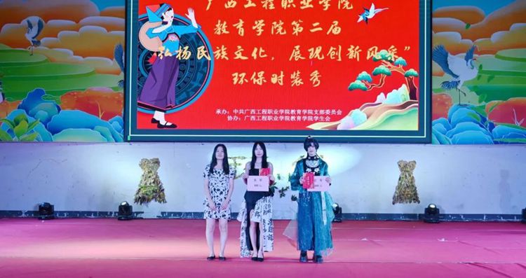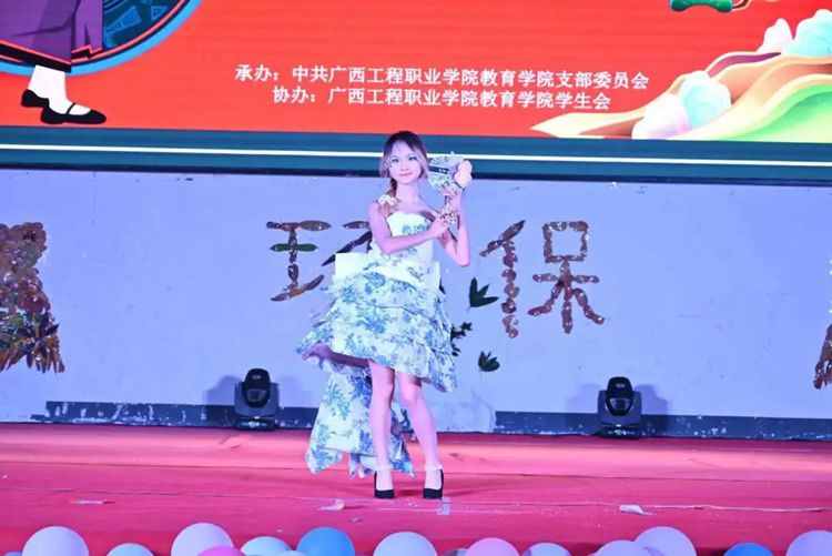 為增強(qiáng)學(xué)生綠色環(huán)保意識(shí),促進(jìn)人與自然和諧共生,推動(dòng)綠色發(fā)展,豐富校園文化生活,同時(shí)引導(dǎo)大學(xué)生創(chuàng)新思維,為熱愛時(shí)裝設(shè)計(jì)的同學(xué)提供一個(gè)展示自我的平臺(tái),4月2日晚,廣西工程職業(yè)學(xué)院教育學(xué)院在體育館舉行第二屆“弘揚(yáng)民族文化,展現(xiàn)創(chuàng)新風(fēng)采”環(huán)保時(shí)裝秀。