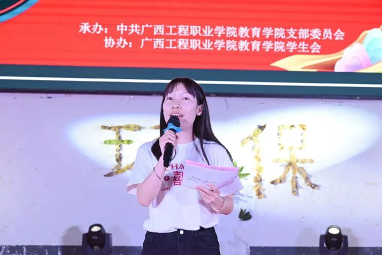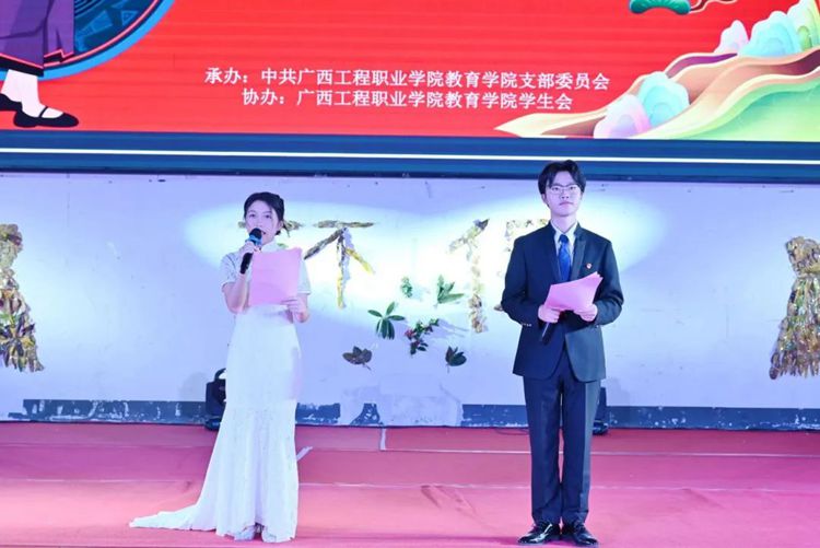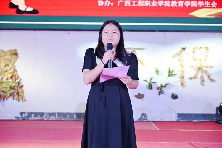 校長助理梁善雅宣布廣西工程職業(yè)學(xué)院教育學(xué)院第二屆“弘揚(yáng)民族文化,展現(xiàn)創(chuàng)新風(fēng)采”環(huán)保時(shí)裝秀比賽開始。