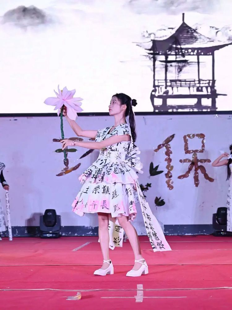 教育學(xué)院黨支部副書記盧燕梅致辭,她指出,本次環(huán)保時(shí)裝秀旨在增強(qiáng)當(dāng)代大學(xué)生的環(huán)保意識(shí),展示大學(xué)生的動(dòng)手能力和藝術(shù)風(fēng)采,展現(xiàn)當(dāng)代大學(xué)生健康、活潑、創(chuàng)新的精神風(fēng)貌,積極推動(dòng)校園文化建設(shè)。她堅(jiān)信,同學(xué)們大膽創(chuàng)新的服裝設(shè)計(jì)一定會(huì)給大家?guī)沓銎洳灰獾捏@喜,希望同學(xué)們把奇思妙想穿在身上,把優(yōu)雅風(fēng)姿展現(xiàn)在T臺(tái)上,把聰慧睿智展露在笑臉上。