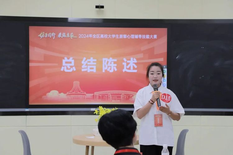 本次大賽以“攜手同行、共筑未來”為主題,全區(qū)78所高校共109個團隊參賽。大賽分為心理健康知識短視頻、心理健康知識測試和朋輩心理輔導(dǎo)模擬三個環(huán)節(jié)。我校的參賽學(xué)子們在備賽過程中嚴(yán)謹(jǐn)細致,在各個比賽環(huán)節(jié)從容不迫、沉著應(yīng)對,展現(xiàn)出朋輩心理輔導(dǎo)員良好的專業(yè)素養(yǎng)和談話技能。