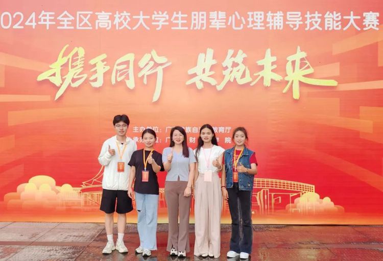 5月25—26日,由自治區(qū)教育廳主辦的2024年全區(qū)高校大學(xué)生朋輩心理輔導(dǎo)技能大賽決賽在廣西財經(jīng)學(xué)院相思湖校區(qū)舉行。我校參賽隊伍(隊員:張曼、胡成超、黃敏;指導(dǎo)老師:黃秋霞、李麗詩、凌艷婷)在決賽中表現(xiàn)優(yōu)異,榮獲三等獎。