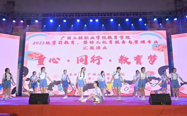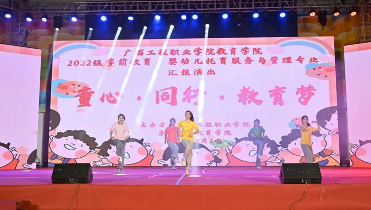 2024年6月5日,我校教育學(xué)院在體育館開展以“童心·同行·教育夢”為主題的2022級學(xué)前教育、嬰幼兒托育服務(wù)與管理專業(yè)匯報演出。
