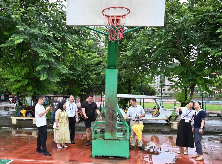 檢查組深入運(yùn)動(dòng)場(chǎng)所檢查設(shè)施安全情況