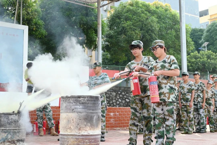 看!輔導(dǎo)員、教官鉚足了勁誓要將火焰"按住""按住""按住"