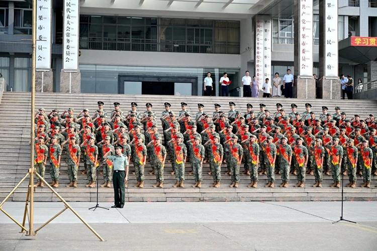 歡送現場,新兵們身姿挺拔,目光堅定。他們高舉右拳,莊嚴宣誓,那一聲聲激昂的誓言在空氣中回蕩,彰顯著他們保家衛(wèi)國的決心和擔當。