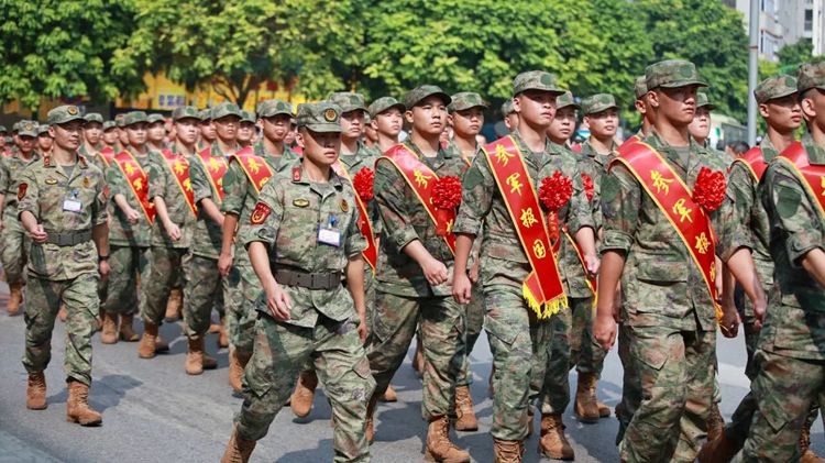 新兵們邁著整齊而有力的步伐走在游行的隊伍之中,他們目光堅定,嶄新的軍裝在陽光下熠熠生輝,那一張張年輕而充滿朝氣的臉龐上寫滿了自豪與使命感,仿佛在向世人宣告他們對國家和人民的忠誠以及投身國防事業(yè)的決心。