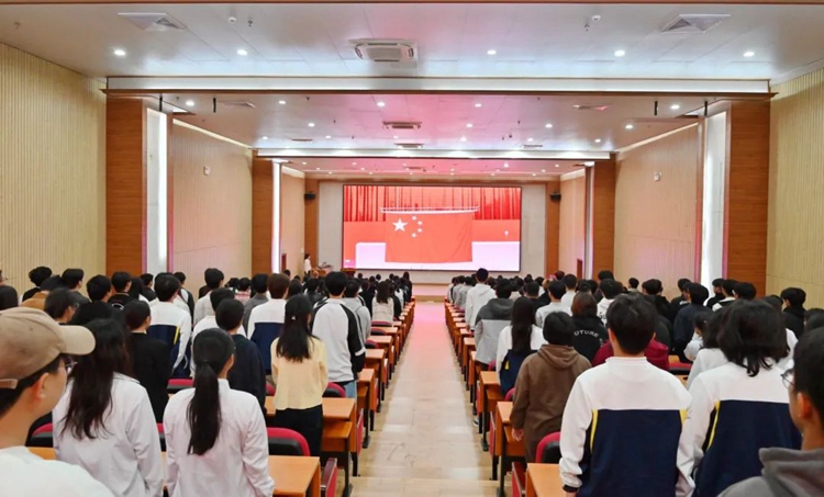 全體師生面向國旗肅立行注目禮,國歌聲雄渾嘹亮,飽含對祖國的無限熱愛與崇高敬意。