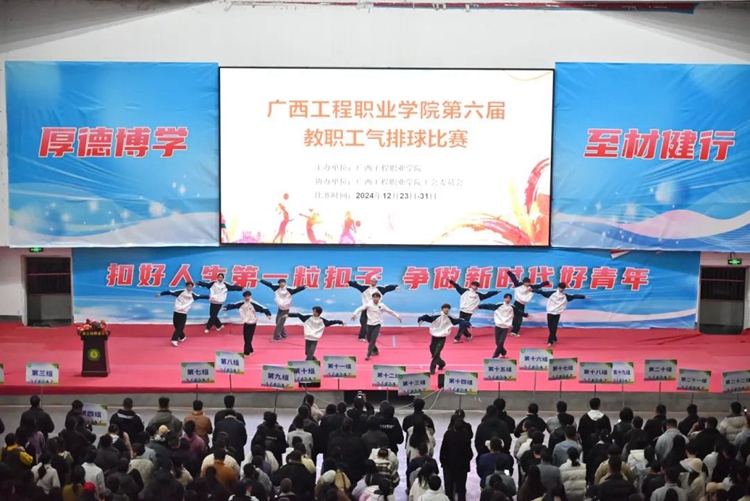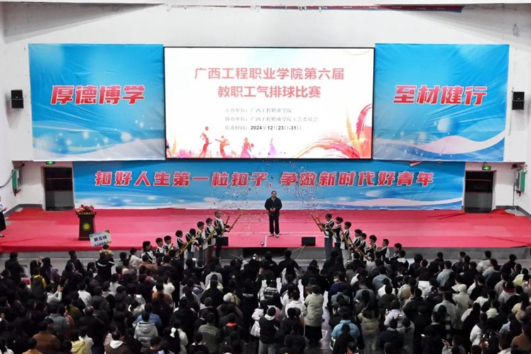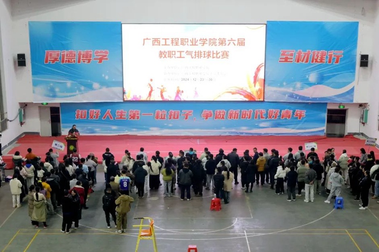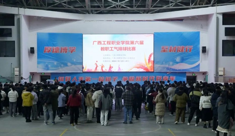 2024年12月23日19時(shí),廣西工程職業(yè)學(xué)院第六屆教職工氣排球比賽開(kāi)幕式在體育館舉行。