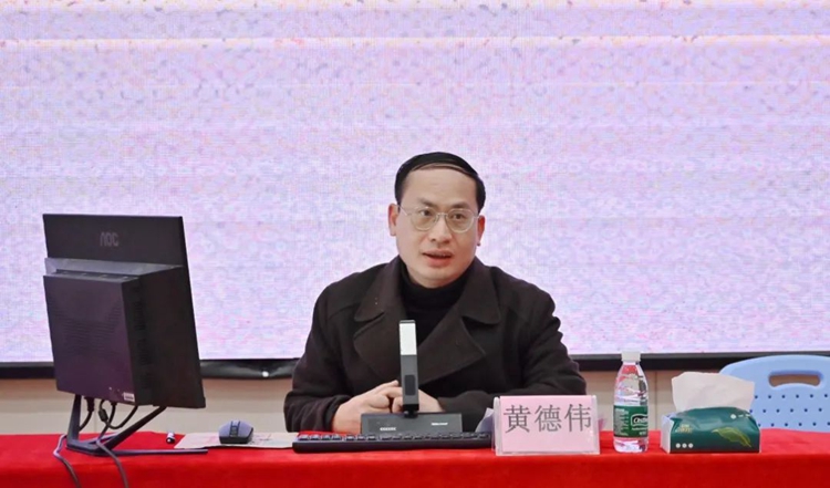 圖為副校長黃德偉作題為《做好課堂育德工作,培育德才兼?zhèn)淙瞬拧穼n}培訓(xùn)