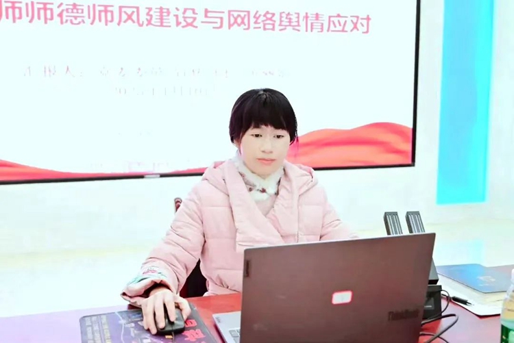 黨委宣傳部部長黃麗娟作高校教師師德師風(fēng)建設(shè)與網(wǎng)絡(luò)輿情應(yīng)對專題培訓(xùn),她主要從全媒體時代高校網(wǎng)絡(luò)輿情傳播的特點(diǎn)、高校網(wǎng)絡(luò)輿情的主要類型、高校師德失范輿情應(yīng)對策略等三個方面,結(jié)合典型案例分析和工作實踐,做了深入指導(dǎo)。要求各部門要嚴(yán)格落實意識形態(tài)工作責(zé)任制,增強(qiáng)底線思維,繃緊風(fēng)險防范意識,不斷提升化解風(fēng)險能力和意識形態(tài)工作本領(lǐng),確保意識形態(tài)安全,構(gòu)建安全穩(wěn)定的校園環(huán)境。