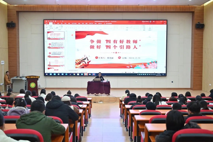 副校長蔣茂麗作題為《大力弘揚(yáng)教育家精神》和《爭做“四有好教師”,做好“四個引路人”》的專題培訓(xùn)。她要求全體教師要深刻把握教育家精神的內(nèi)涵要義,大力弘揚(yáng)教育家精神,涵養(yǎng)高尚師德師風(fēng),依法履行教師職責(zé),對標(biāo)新時代高校教師職業(yè)行為十項準(zhǔn)則,不斷充實、提升自己,增強(qiáng)責(zé)任意識、服務(wù)意識,爭做“四有好老師”,做好“四個引路人”,踐行“四個相統(tǒng)一”,努力成為“經(jīng)師”與“人師”相統(tǒng)一的大先生,培養(yǎng)堪當(dāng)民族復(fù)興重任的時代新人,共同推動學(xué)校高質(zhì)量發(fā)展,為強(qiáng)國建設(shè)民族復(fù)興偉業(yè)作出新的更大貢獻(xiàn)。
