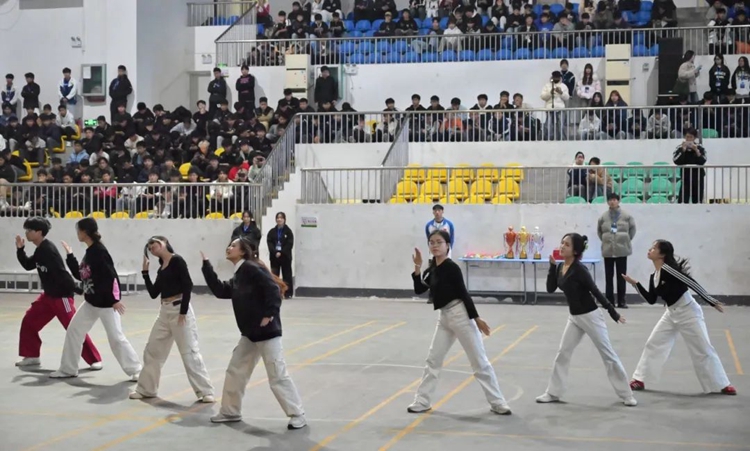 中場(chǎng)休息期間,街舞協(xié)會(huì)為到場(chǎng)師生和運(yùn)動(dòng)員們呈現(xiàn)了一場(chǎng)充滿活力的舞蹈,將比賽的氛圍推向了新的高潮。