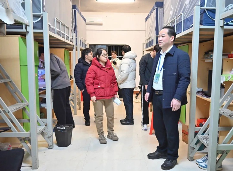 新年伊始,春意盎然。為及時深入了解學生返校后的學習生活情況,加強宿舍文明建設,我校黨委書記、督導專員蒙本曼,副校長黃德偉,學生工作處、二級學院負責人深入學生宿舍開展走訪慰問活動。