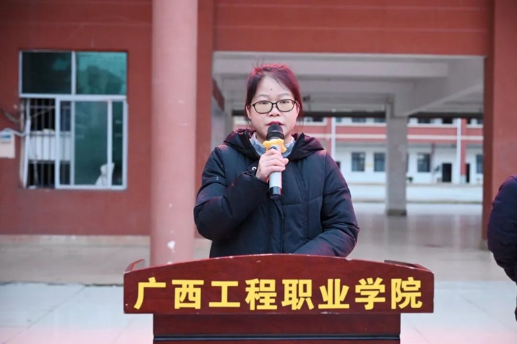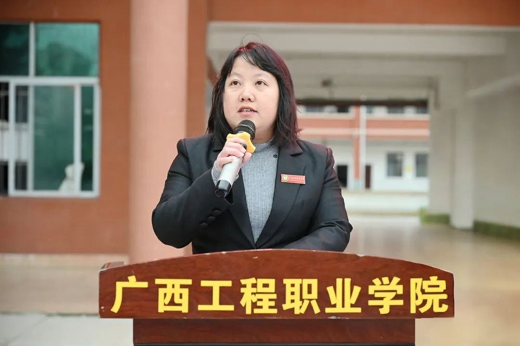 圖為黨委副書記、校長羅艷妮講話