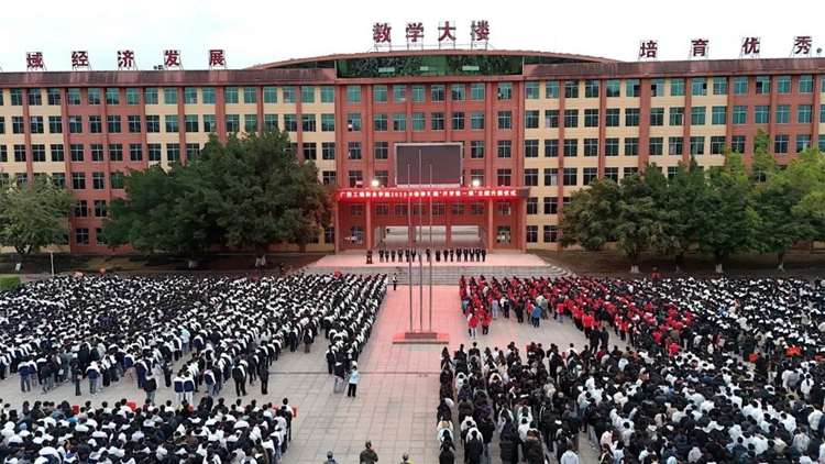 圖為“開學(xué)第一課”主題升旗儀式現(xiàn)場(chǎng)
