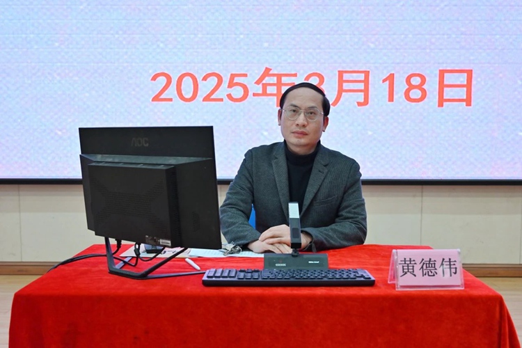 圖為副校長黃德偉傳達(dá)全區(qū)傳達(dá)貫徹全國兩會(huì)精神視頻會(huì)