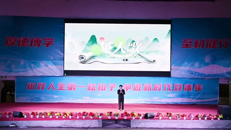 副校長黃德偉致辭。他表示,“三月三” 是廣西多民族共有的傳統(tǒng)節(jié)日,承載著深厚歷史文化與民族情感,是廣西特色文化象征。民歌作為民族文化瑰寶,傳遞著民族情感與智慧,彰顯了團結(jié)和諧。此次校園好聲音比賽,是展示自我的舞臺,更是傳承文化的橋梁。借由歌聲,我們追溯文化根脈,汲取奮進之力,讓優(yōu)秀文化煥發(fā)新光彩。同學們作為新時代青年,是文化傳承新生力量,站在舞臺上歌唱,便已是文化傳承使者。希望大家在舞臺上盡情發(fā)揮,用歌聲感染聽眾,展現(xiàn)民族文化魅力與民族團結(jié)偉力。