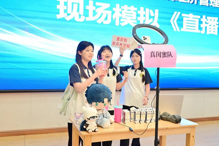 隨著比賽正式開(kāi)始,各參賽隊(duì)伍依次登場(chǎng)。比賽中,參賽選手精神飽滿,分發(fā)揮自己的專業(yè)知識(shí)和創(chuàng)新思維,化身為專業(yè)電商主播,自信從容,模擬直播帶貨精彩紛呈。