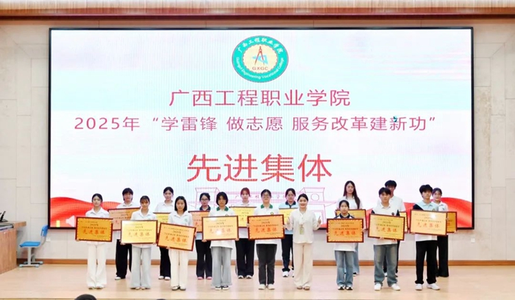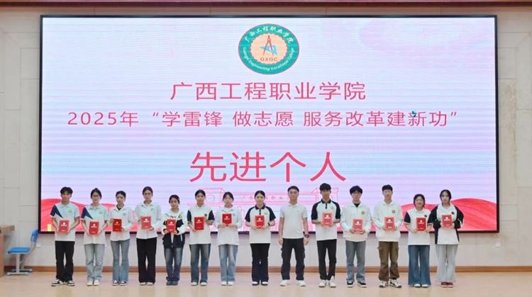 圖為汽車與機(jī)電學(xué)院學(xué)生科科長陸新鋒為獲得2025年“學(xué)雷鋒 做志愿 服務(wù)改革建新功”先進(jìn)個(gè)人榮譽(yù)稱號(hào)的學(xué)生代表頒獎(jiǎng)