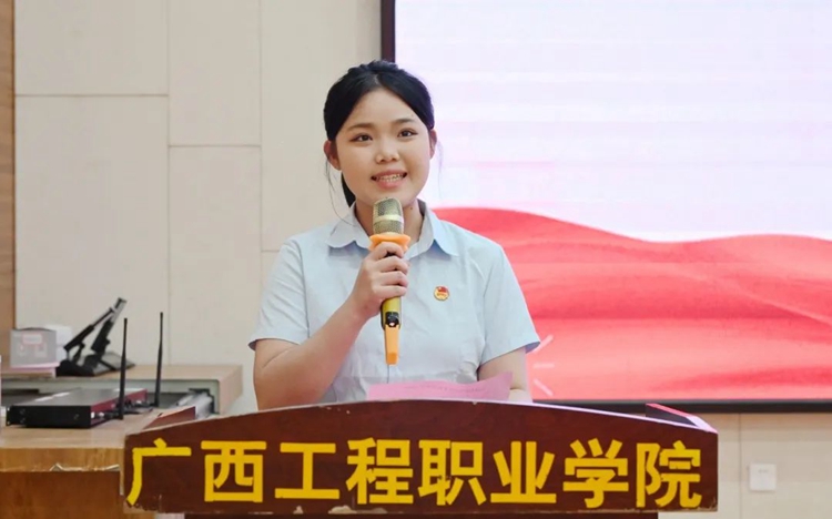 圖為學(xué)生代表韋麗欣同學(xué)發(fā)言