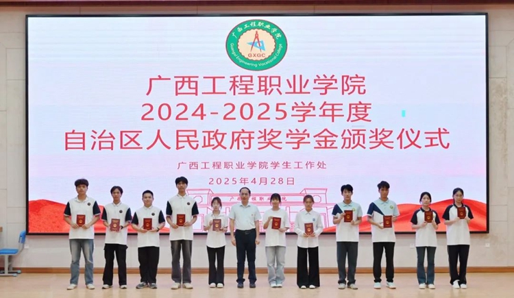 圖為學(xué)校副校長黃德偉為獲得2024-2025學(xué)年度自治區(qū)人民政府獎(jiǎng)學(xué)金的學(xué)生頒獎(jiǎng)