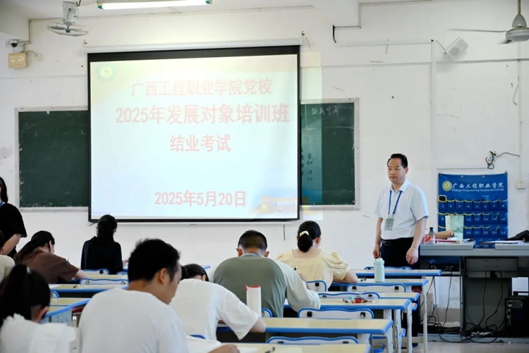 根據(jù)廣西工程職業(yè)學(xué)院黨校教學(xué)計(jì)劃安排,5月20日下午,學(xué)校黨校舉行2025年黨員發(fā)展對(duì)象培訓(xùn)班結(jié)業(yè)考試。本期黨員發(fā)展對(duì)象培訓(xùn)班結(jié)業(yè)考試共設(shè)3個(gè)考場,共有194名學(xué)員參加結(jié)業(yè)考試。結(jié)業(yè)考試組織有序,考場紀(jì)律良好,學(xué)員考生認(rèn)真作答。學(xué)校黨委書記、政府督導(dǎo)專員蒙本曼帶隊(duì)巡察考試情況。