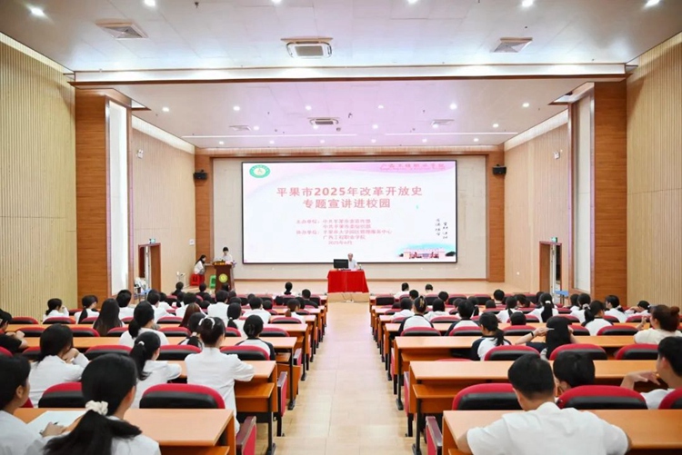 為深入學習貫徹黨的二十大和二十屆二中、三中全會精神,深入學習全面深化改革的重要意義、實踐意義,進一步強化理想信念教育,激發(fā)師生的愛國情懷和奮斗精神,6月12日,平果市2025年改革開放史專題宣講進校園活動在廣西工程職業(yè)學院圖文大樓一樓學術報告廳舉行。宣講活動由平果市“五老”宣講團成員黃成義主講。平果市委組織部、平果市委宣傳部、平果市大學園區(qū)管理服務中心相關工作人員,學校黨委宣傳部、馬克思主義學院、校團委等相關部門負責人及各二級學院師生代表參加活動。宣講活動由學校黨委委員、宣傳部長黃麗娟主持。