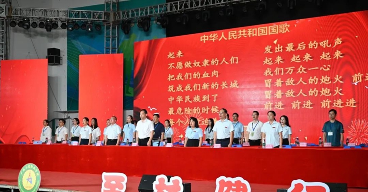圖為全體起立,奏唱國(guó)歌