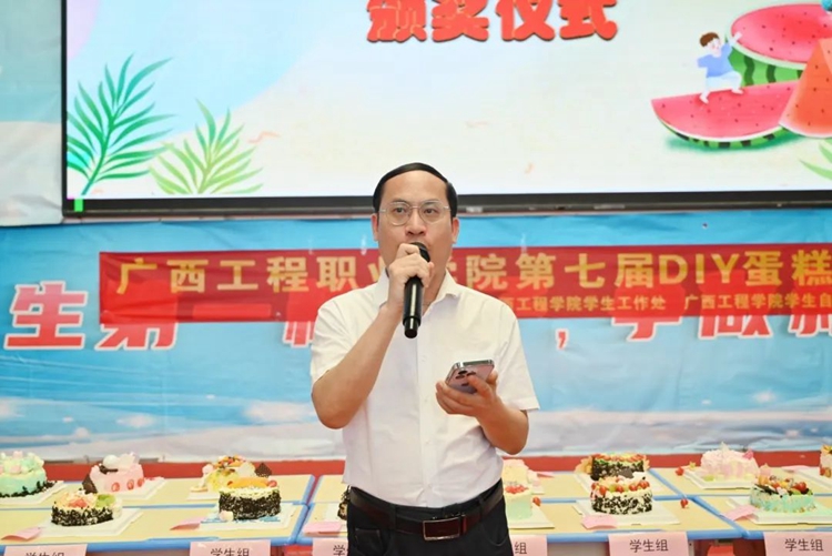 圖為副校長(zhǎng)黃德偉宣布廣西工程職業(yè)學(xué)院第七屆DIY蛋糕大賽活動(dòng)開(kāi)始