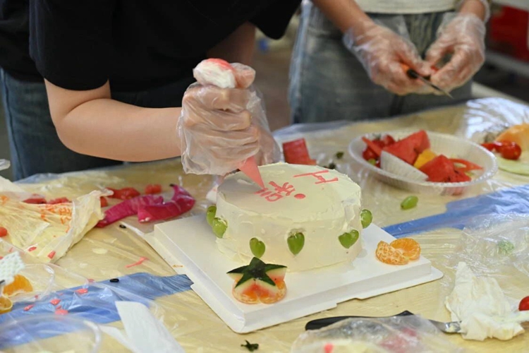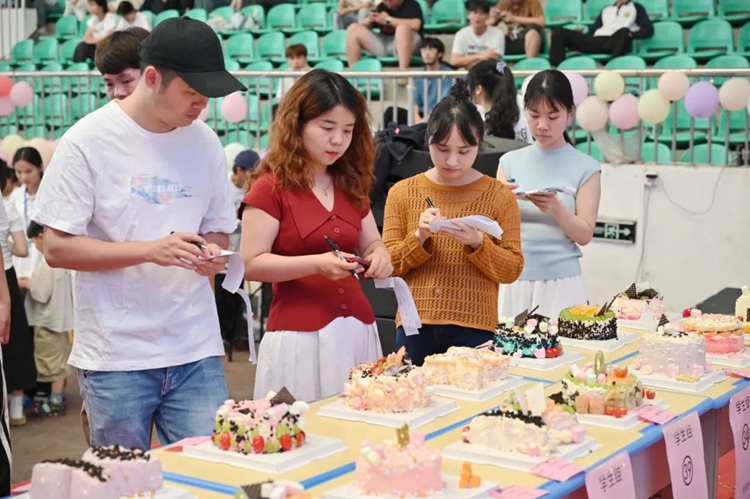 經(jīng)過(guò)45分鐘的精心制作,一個(gè)個(gè)造型精美、創(chuàng)意十足的蛋糕驚艷亮相,有的以校徽為靈感,有的融入校園標(biāo)志性建筑元素,每一個(gè)作品都凝聚著同學(xué)們對(duì)學(xué)校的熱愛(ài)與祝福。