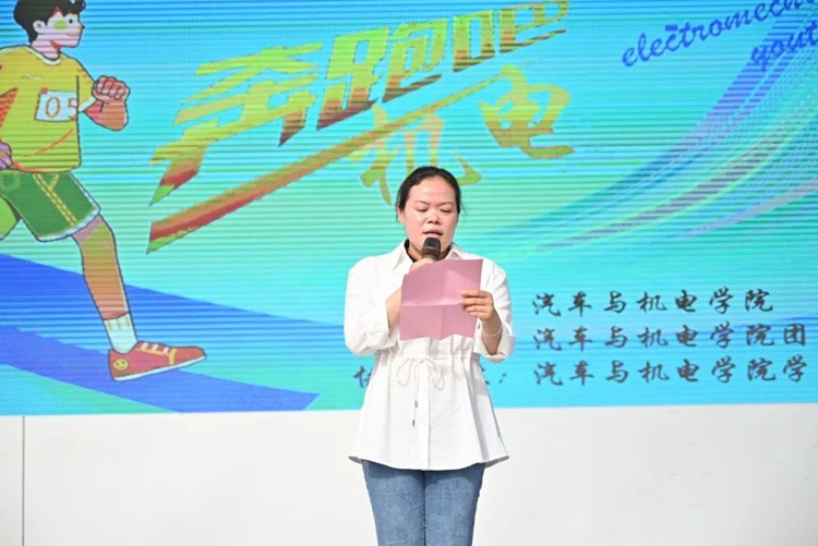 汽車與機電學院副院長梁欣欣致辭,她指出,學院的發(fā)展離不開每一位師生的努力與奉獻,希望通過豐富多彩的趣味項目,增進師生情誼、凝聚團隊力量,在歡聲笑語中傳遞機電學子的拼搏精神與青春活力。最后,她強調(diào),一要安全為先,活動過程中,全體參賽者遵守規(guī)則、量力而行,工作人員務必做好安全保障,確?;顒禹樌_展;二要友誼為重,希望大家秉承“友誼第一,比賽第二”的宗旨,以團結(jié)協(xié)作展現(xiàn)機電風采,以文明競技傳遞校園溫度。
