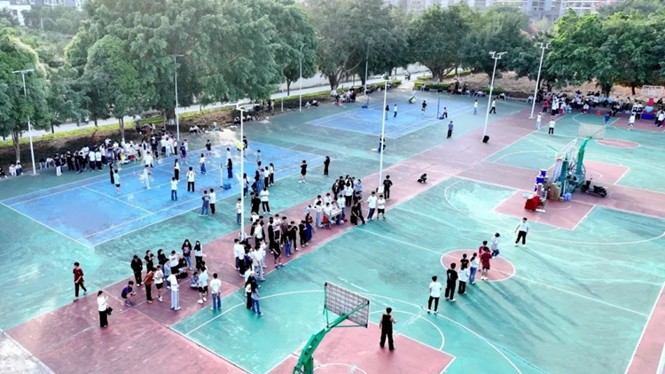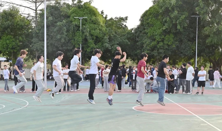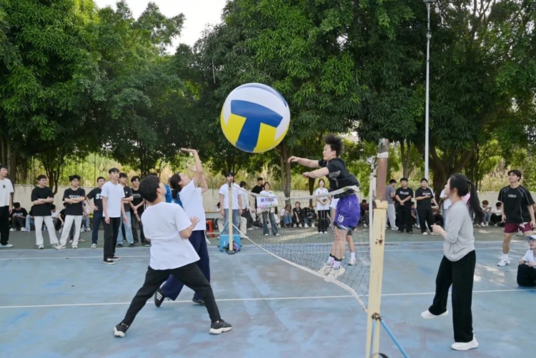 校慶活動以體育競技為亮點,在運動場上激情綻放。巨型排球賽中,同學們精神抖擻,嚴陣以待。扣球瞬間,選手們高高躍起,以雷霆之勢將球扣殺,每一個動作都凝聚著團隊的默契與拼搏,場邊的陣陣喝彩是對他們體育精神的最好褒獎。