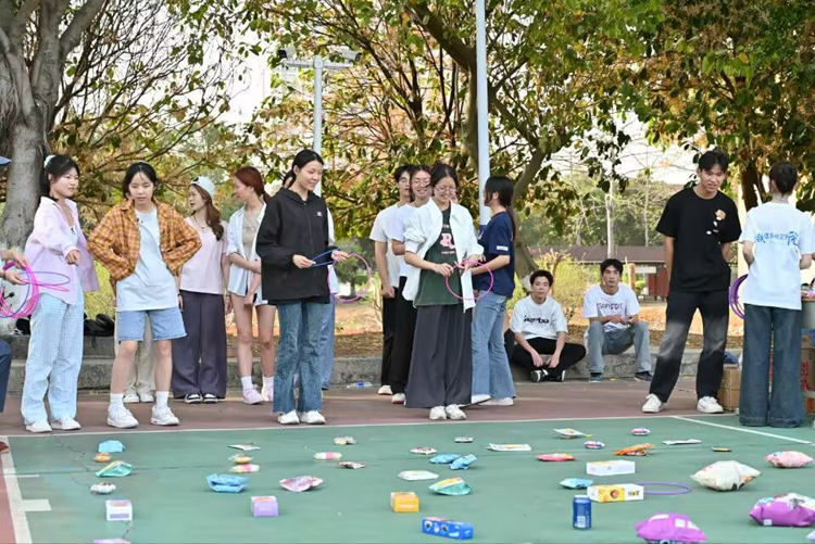 除了激烈的競技比賽,活動現(xiàn)場還設置了多個趣味小游戲,如套圈活動、蒙眼吃香蕉、徒手穿花褲等。這些小游戲不僅增加了活動的趣味性,也吸引了眾多師生的積極參與。在套圈活動中,師生們站在指定線外,對準目標扔出圈圈,套中物體即為成功。蒙眼吃香蕉則考驗了兩人之間的默契,一人蒙眼,一人指揮,將香蕉喂到同伴口中。徒手穿花褲更是吸引了眾多觀眾的目光,參賽人員在指定區(qū)域快速穿上特制花褲,完成規(guī)定動作,現(xiàn)場笑聲不斷。