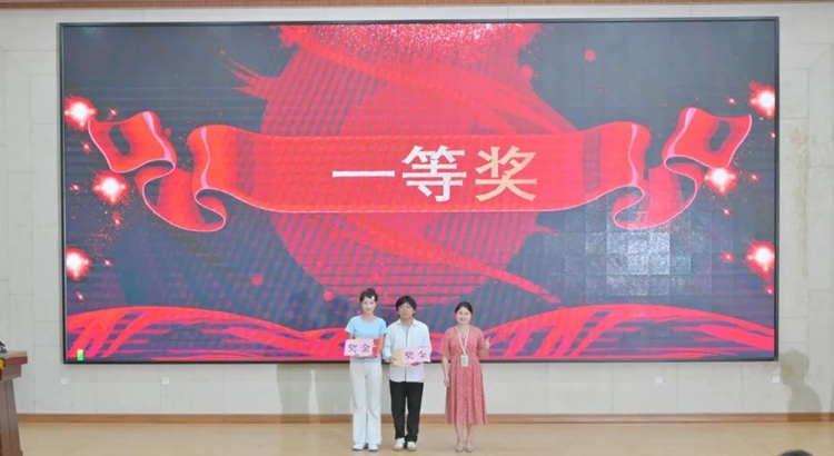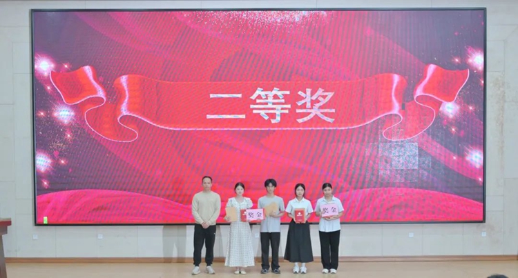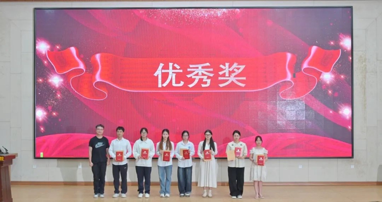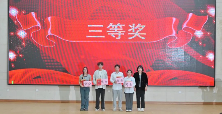 圖為團(tuán)委副書記李麗清為獲得“一等獎”的同學(xué)頒獎