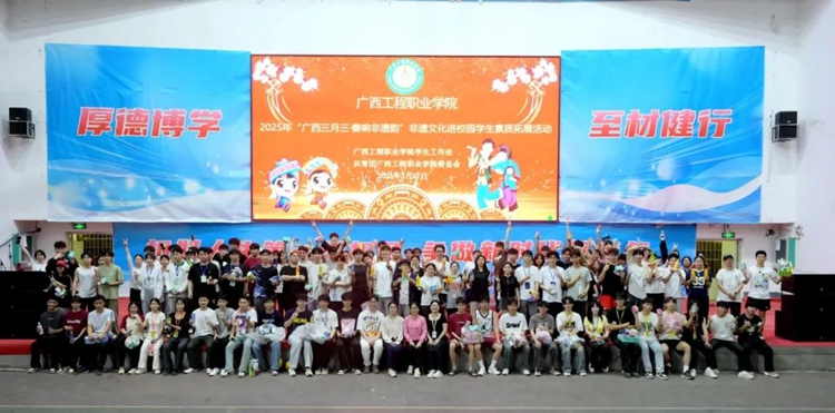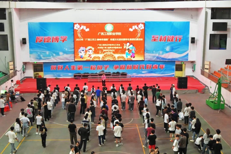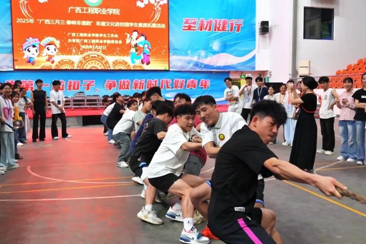 為進一步提升我校學生的素質(zhì)和能力,增強學生對壯鄉(xiāng)傳統(tǒng)文化的認同感和自豪感,培養(yǎng)學生的團隊協(xié)作能力和凝聚力,3月26日,我校在體育館舉辦2025年春季學期“廣西三月三·奏響非遺韻”非遺文化進校園活動之學生素質(zhì)拓展活動。副校長黃德偉出席活動,學生工作處、團委老師及各社團學生參加活動。