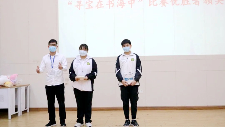 會(huì)上對(duì)“尋寶在書海中”獲獎(jiǎng)的讀者、抽獎(jiǎng)幸運(yùn)觀眾以及圖書館優(yōu)秀學(xué)生助理進(jìn)行了頒獎(jiǎng)。