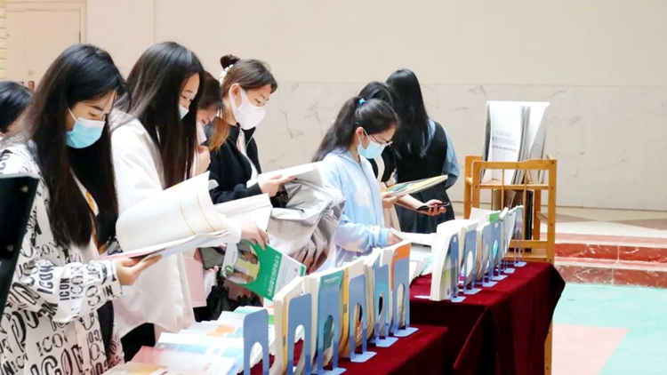 在圖文信息大樓一樓大廳,圖書館展出了紅色讀物、經(jīng)典文學(xué)作品、生態(tài)文明類書刊等,吸引眾多學(xué)生前來駐足觀看閱讀。同學(xué)們靜心閱讀,品味書香,營造了濃厚的讀書氛圍。