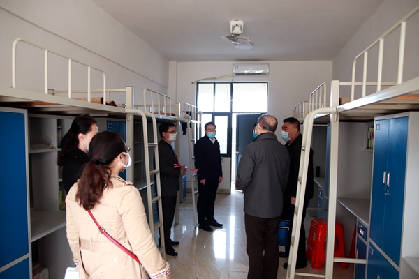 匯報會結(jié)束,賓正迎組長一行詳細核查了學(xué)校2020年春季學(xué)期開學(xué)準(zhǔn)備工作相關(guān)臺賬、資料,并實地參觀走訪了學(xué)校疫情防控物資儲備室、學(xué)生餐廳、集中醫(yī)學(xué)觀察點、學(xué)生宿舍、校醫(yī)室、教學(xué)樓等,深入了解學(xué)校疫情防控工作各項措施落實情況。
