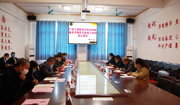 2020年4月7日,自治區(qū)公安廳政治部主任賓正迎、自治區(qū)公安廳政治部人事訓(xùn)練處副處長李華、自治區(qū)城鄉(xiāng)住房建設(shè)廳人事處副處長王昭及廣西疾病控制中心主治醫(yī)師周凌云一行4人蒞臨廣西工程職業(yè)學(xué)院開展自治區(qū)直屬高校開學(xué)準(zhǔn)備評估工作,教育廳督導(dǎo)專員、學(xué)校黨委書記方仕英,校長唐林,副校長林艷、彭高彬、林萌、羅艷妮,校長助理胡細木、黃秋霞、黃德偉及學(xué)校相關(guān)部門負(fù)責(zé)同志參加評估工作。