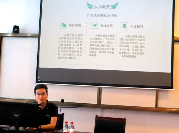 百色市創(chuàng)業(yè)孵化基地負責人楊樹源作創(chuàng)新創(chuàng)業(yè)宣講