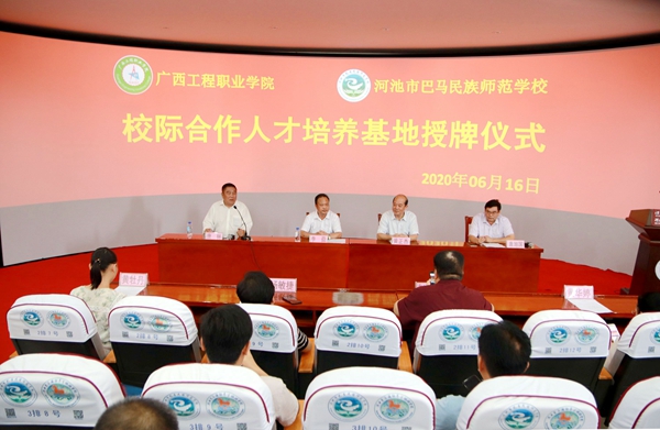 為大力發(fā)展職業(yè)教育,推進中職高職教育有效銜接、協(xié)調(diào)發(fā)展,加快構建現(xiàn)代職業(yè)教育體系,6月16日,我校校長唐林、紀委書記李益等一行赴河池市巴馬民族師范學校就兩校共建校際合作人才培養(yǎng)基地進行授牌。