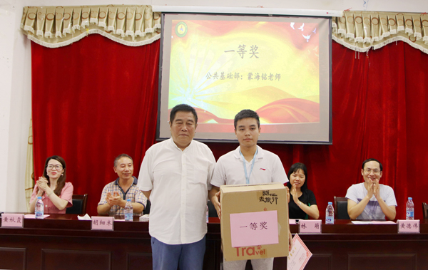 獲獎(jiǎng)教師代表蒙海銘老師發(fā)言,他感謝學(xué)校提供了這樣一個(gè)活動(dòng)平臺(tái),促進(jìn)和推動(dòng)了自己的專(zhuān)業(yè)成長(zhǎng);今后他將再接再厲,多與老教師、優(yōu)秀教師交流學(xué)習(xí),不斷提高自己的教學(xué)能力和水平,為學(xué)校的申本工作添磚加瓦,為學(xué)校的人才培養(yǎng)質(zhì)量上新臺(tái)階奉獻(xiàn)力量。