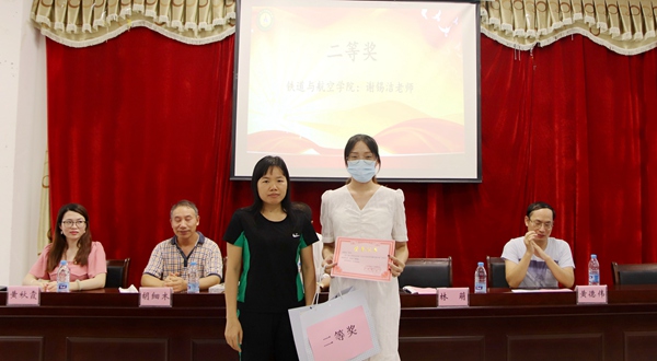 副校長(zhǎng)林萌為榮獲二等獎(jiǎng)的老師頒獎(jiǎng)