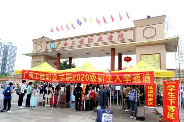 新生開學(xué)時期,學(xué)校在南寧市和平果市各個汽車站、火車站等設(shè)置迎新接待點,并安排校車接送新生到校。在校門口設(shè)置體溫檢測、行李消殺、出入掃碼、更換口罩等新冠肺炎疫情防控檢查通道及卡點,校內(nèi)開通新生入學(xué)報到綠色通道,張貼入學(xué)報到流程,設(shè)置接待、引領(lǐng)、咨詢、行李寄存、各二級學(xué)院注冊區(qū)、后勤生活物品領(lǐng)取等服務(wù)崗,確保迎新工作安全、有序、順利。