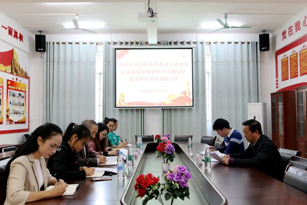 11月10日上午,百色市委教育工委委員,市教育局黨組成員、副局長梁富文,百色市委教育工委辦公室干部蘇福友一行到我校開展新時(shí)代黨的組織路線情況排查督導(dǎo)工作。平果市大學(xué)園區(qū)黨工委書記楊敏捷、專職副書記黃華婷出席調(diào)研活動(dòng),我校黨委副書記、副校長胡細(xì)木,黨委委員、黨委辦副主任李麗詩,校長助理黃秋霞出席調(diào)研座談會,校黨委副書記、副校長胡細(xì)木主持會議。