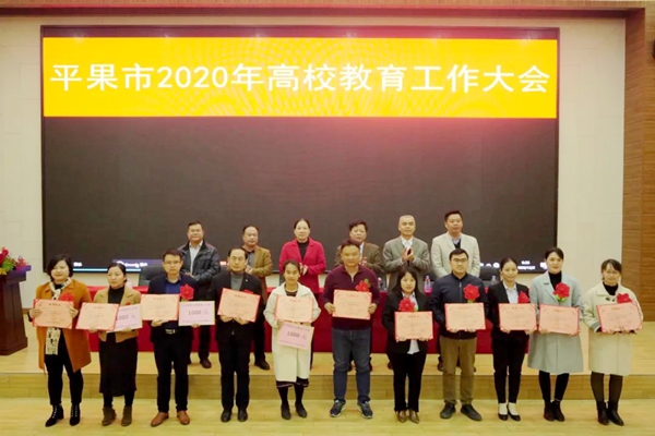 2020年12月2日,平果大學(xué)園區(qū)“2020年高校先進(jìn)集體和先進(jìn)教育工作者表彰大會”在我校圖文信息大樓報(bào)告廳舉行,平果市委常委、宣傳部部長、市人民政府副市長黃萍出席會議并致辭。我校榮獲“先進(jìn)集體”稱號,羅艷妮、黃德偉、蔣茂麗三位同志榮獲“先進(jìn)教育工作者”稱號。