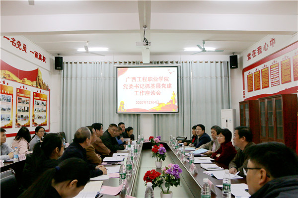 12月4日,自治區(qū)教育廳民辦教育管理處處長蔣國平、廣西外國語學(xué)院黨委書記周江煜、百色市委教育工委委員、市教育局副局長梁富文、自治區(qū)黨委教育工委組織部二級(jí)主任科員賀志超一行4人到我校開展黨委書記抓基層黨建調(diào)研。平果市教育局黨委副書記李小榮、平果市大學(xué)園區(qū)黨工委書記楊敏捷出席調(diào)研活動(dòng);我校黨委書記呂偉斌、紀(jì)委書記、董事長李益、校長唐林,黨委副書記、副校長胡細(xì)木,以及其他黨委委員、紀(jì)委委員、黨支部書記代表、黨委辦公室全體人員出席調(diào)研會(huì)。