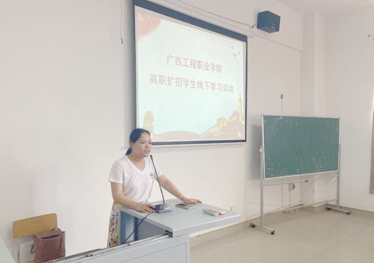 黃秋霞助理首先代表學校向全體參加線下學習的同學們表示熱烈的歡迎。她指出學校將抓住高職擴招發(fā)展機遇,主動迎接挑戰(zhàn),把高職擴招作為深化職業(yè)教育改革發(fā)展、提升教育教學質量的新動力。同時她對同學們提出了三點殷切希望與要求: