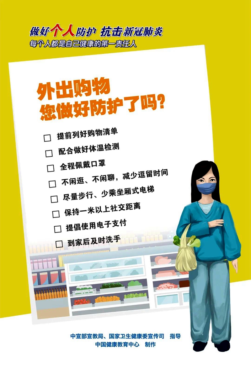 做好個(gè)人防護(hù),抗擊新冠肺炎。在家中、辦公場(chǎng)所、外出購物、施工作業(yè)時(shí),在乘坐出租車、地鐵、飛機(jī)、列車和長(zhǎng)途汽車時(shí),如何做好個(gè)人防護(hù)?大家一起來看中國健康教育中心制作的海報(bào)↓↓↓