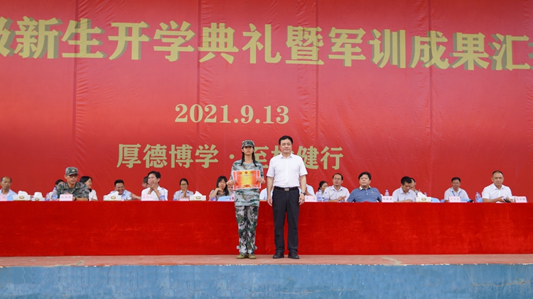 校長唐林致辭。他向悉心指導(dǎo)軍訓(xùn)工作的全體教官以及隨訓(xùn)的各位班主任、輔導(dǎo)員致以衷心的感謝,向圓滿完成軍訓(xùn)任務(wù)的2021級全體新生表示祝賀,并對2021級新生提出殷切希望,一是不忘愛國愛家初心,勇?lián)姑?,做一個具有國家情懷的人;二是不忘求知求學(xué)初心,勇于實(shí)踐,做一個知行合一的人;三是不忘健康快樂初心,錘煉意志,做一個身心健康的人;四是不忘成人成才初心,全面發(fā)展,做一個追求卓越的人;五是不忘追夢圓夢初心,勇于奮斗,做一個能成就個人夢想的人。